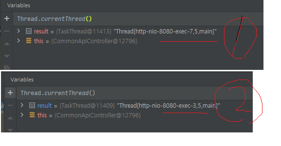 이런식으로 스레드풀이 돌아가면서 나오는 것을 확인.