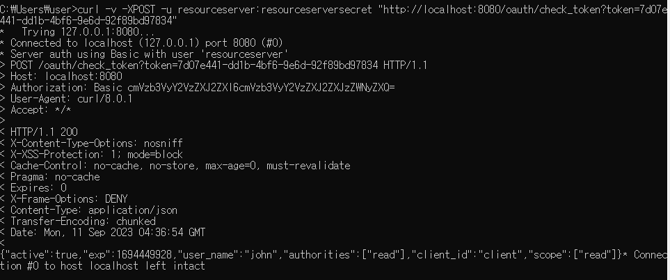 "user_name":"john","authorities":["read"],"client_id":"client","scope":["read"]}*