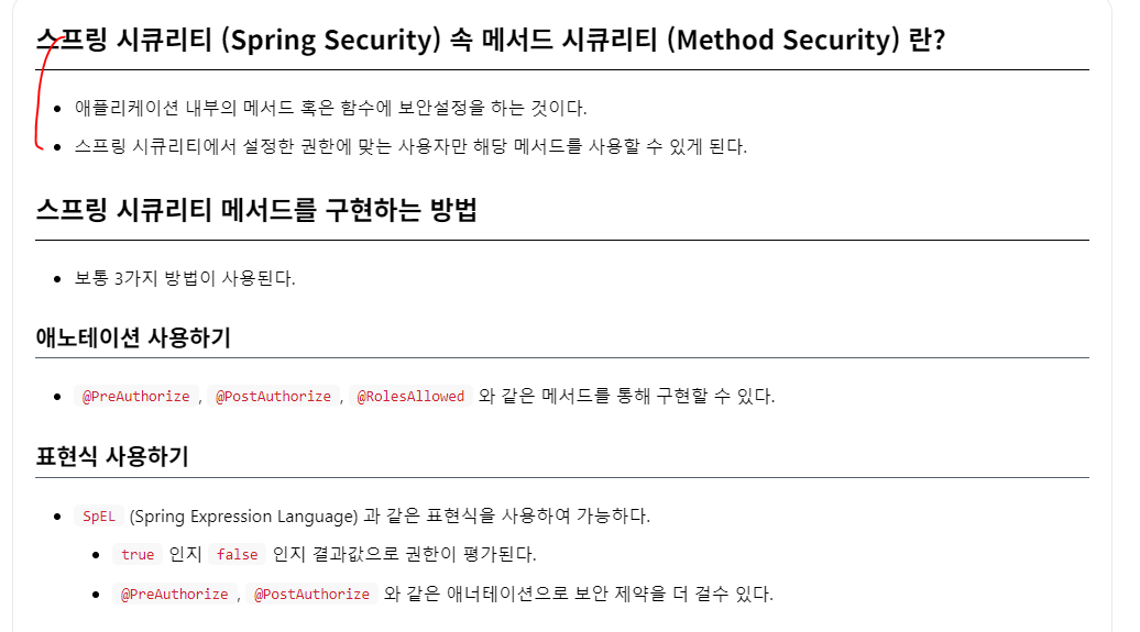 일단 첫번재로 이해가 되지 않았던 부분은 보안처리를 웹어플리케이션 레벨이 아닌 메소드 레벨로 하는 이유이다.
